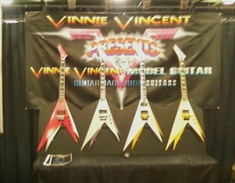 Werbung für die neue Vinnie Vincent Gitarre zu sehen mit Infos wo und wann genau auf der