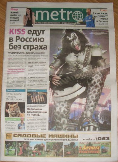 Kiss waren am 30.4.2008 auf der russischen Zeitung "Metro" auf der