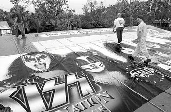 billboard, advertising the rock bank Kiss, donated by Lamar Advertising.